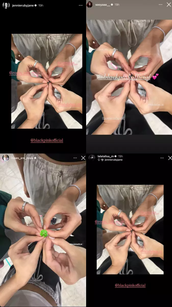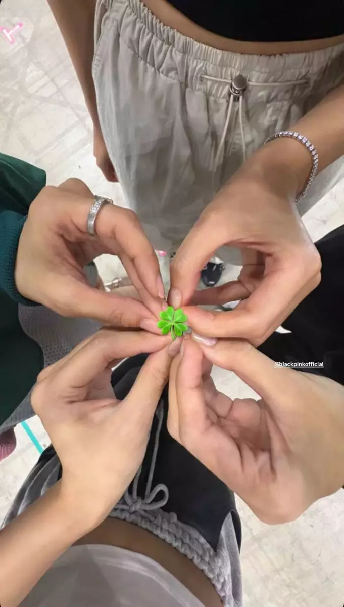 6月24日BLACKPINK四人更新IG,以手指比出「四葉草」圖案預告證準備回歸。IG截圖
