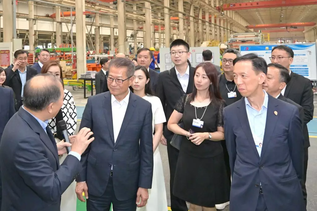 財政司司長陳茂波(左二)帶同香港科技園公司的團隊到訪天津濱海高新技術產業開發區,並參訪開發區內一家從事先進設備製造業務的創新企業。
