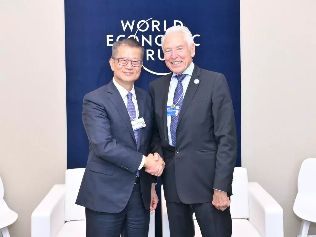陳茂波亦與世界經濟論壇臨時主席包必達會面,向對方介紹香港最新經濟發展情況,包括在金融和創科領域的進展。雙方亦探討在科技創新和人員交流等方面加強合作。陳茂波感謝對方提供借調崗位予香港特區政府人員,讓他們有更多國際交流的經驗。