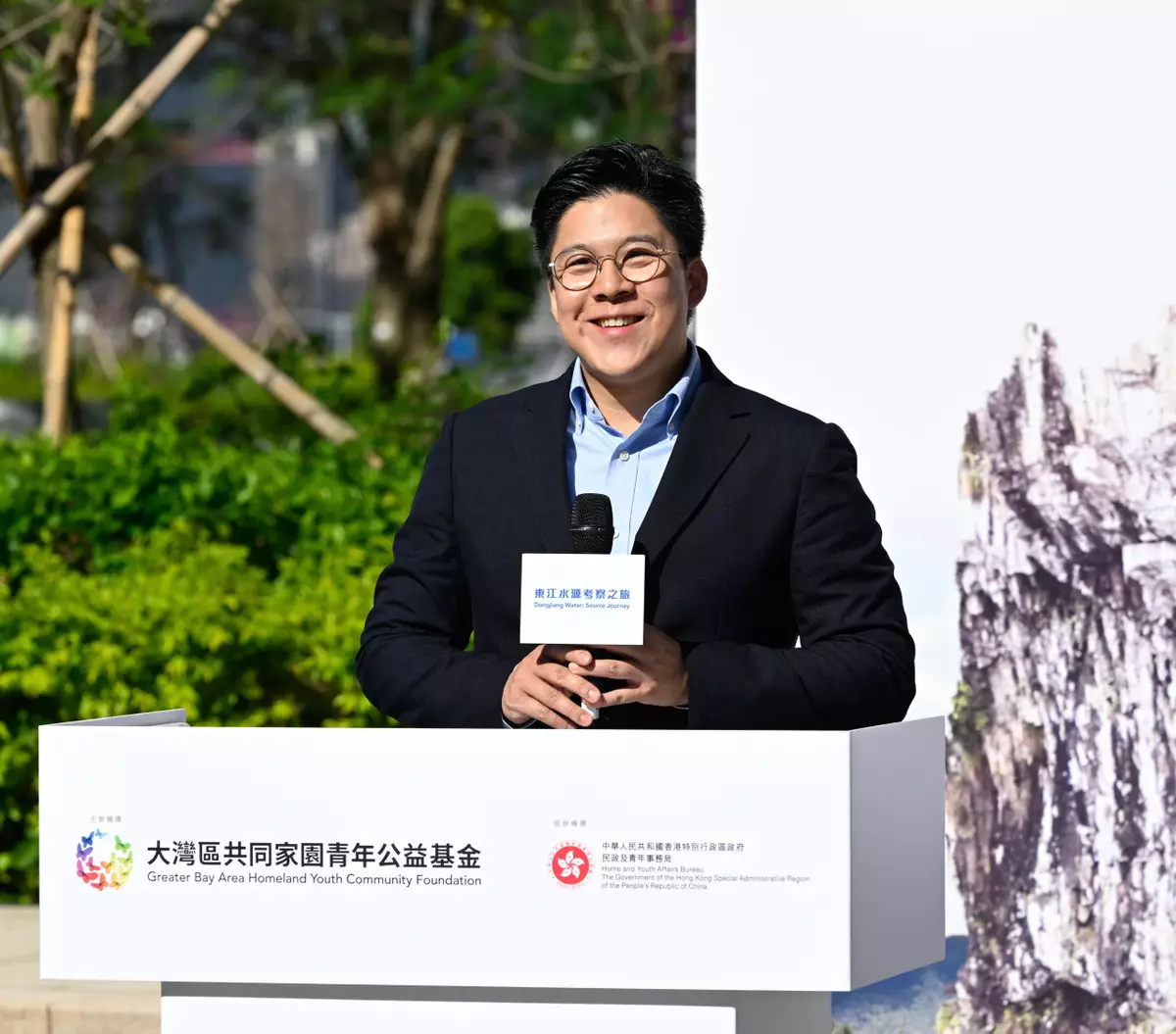 大灣區青年公益基金常務副主席霍啟剛先生致辭時表示:「60年來,東江水日夜奔流,成為聯繫香港同內地的生命線,更見證著粵港兩地風雨同舟,祖國與香港血脈相連。今次的行程,希望同學能深入了解東江水供港的歷史,體會國家為保障供港東江水所付出的巨大努力,以及對香港的關愛同支持。」