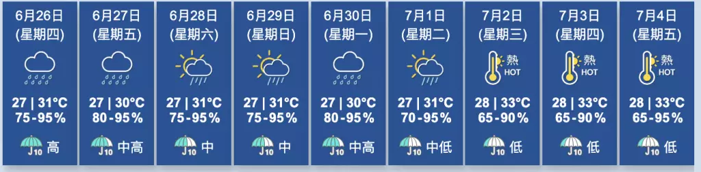 天文台預料,本港星期四間中有狂風驟雨和雷暴。海面亦有湧浪,市民應遠離岸邊並停止所有水上活動。