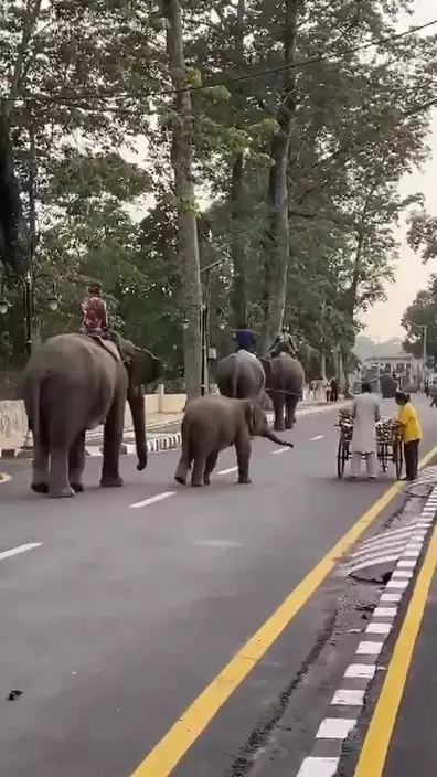 印度一隻小象突然離開父母,走向路邊的攤販取蔬菜,網民稱之為「可愛稅」,呼籲當局立法讓象群隨時隨地不受限制地獲取食物。