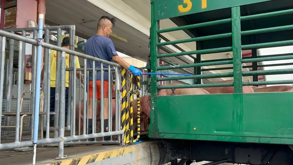 活豬到港需休息半天,趙俊指,香港有相關動物福利法律,其次讓豬休息之後減少長途運輸的應激反應,令豬隻精神狀態相對平和,屠宰之後的鮮肉品質就會更穩定。