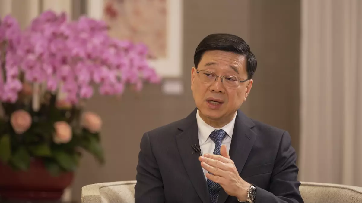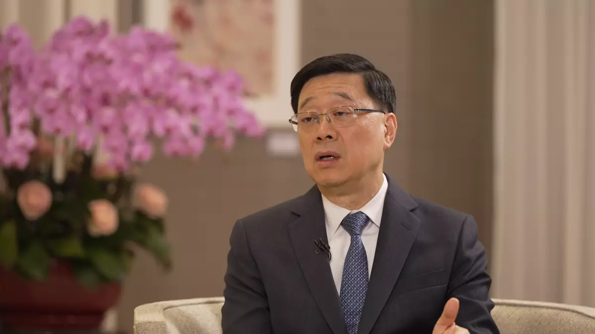 李家超接受「粵港澳媒體灣區行」訪問團視頻專訪時談及在改善民生方面的成績。