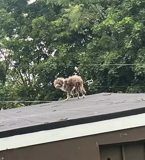 綜合外媒報導,美國紐澤西州一處民宅早前驚現一隻「詭異棕毛生物」在屋頂來回踱步,看起來像在進行奇怪的特技表演般。由於無法辨識牠的身份,不少路人看後傻眼驚呼:「那到底是甚麼東西?」直至有熱心人上前細看才發現,這隻「詭異生物」實際是一隻體形瘦削、肋骨分明的長毛流浪狗,模樣勁惹人憐。