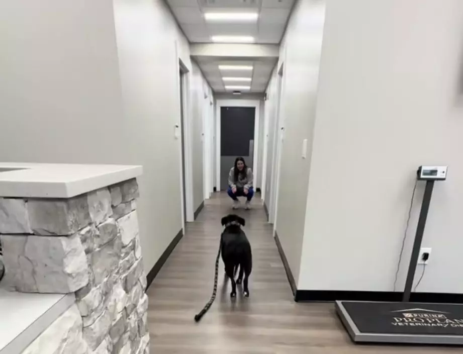 影片可見,Cricket起初感到非常緊張,直至發現獸醫竟然是飼主的女兒後,先是驚喜地搖著尾巴靠近,緊接著意識到對方是「獸醫」,頓時又猶豫不決並迅速跑開。最終確認對方的確是親人後,才安心投入對方懷抱,場面溫馨又逗趣。