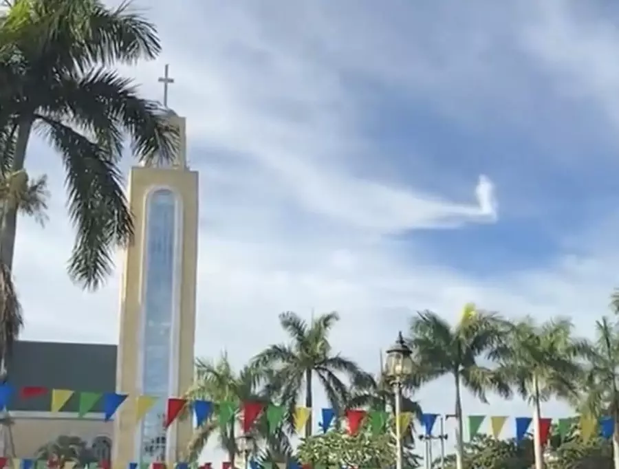 菲律賓聖殿上空驚現耶穌輪廓的雲朵。影片截圖
