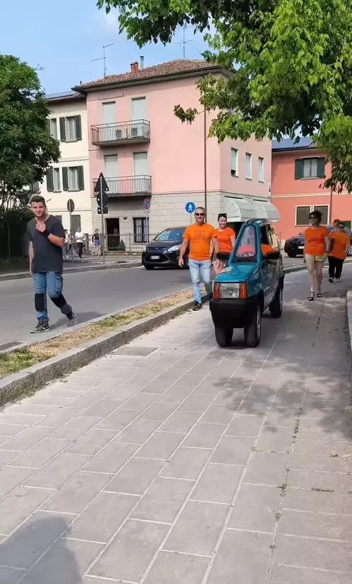 Instagram 分享的片段顯示,意大利潘迪諾舉行汽車拉力賽,數百輛歷史悠久的菲亞特熊貓匯聚一堂。其中最引人注目的是一輛僅有50公分寬的改裝車,成為世界上該車型中最窄的一輛菲亞特熊貓。