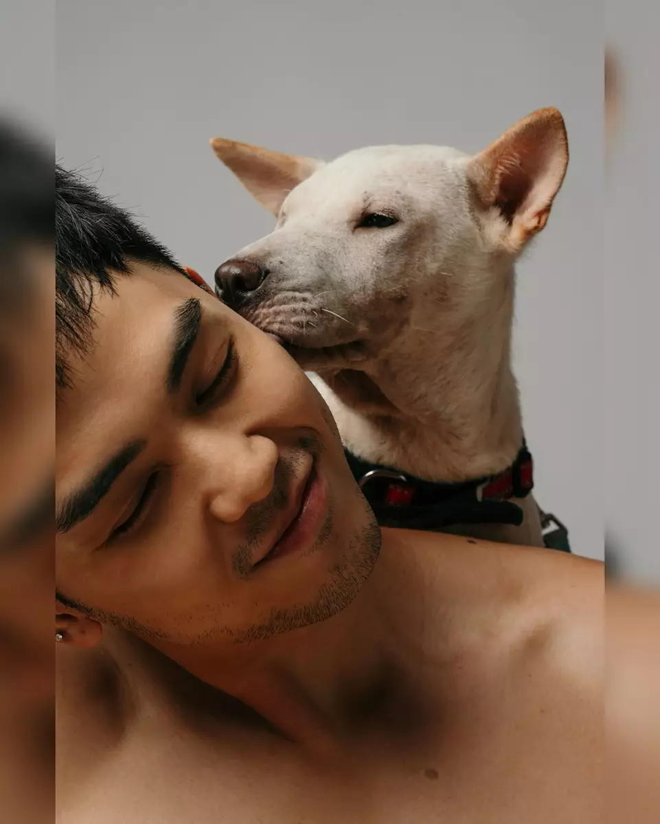 伍富橋在IG分享寫真照,可見他幾乎全裸上陣,除了大晒結實的肌肉,又展現愛心,與三隻流浪狗狗親蜜互動,他表示:「“We are all born naked.”每個人誕生來到這世界時都是一絲不掛,如同所有生命一樣。眾生皆平等。生命沒有高低貴賤之分,無論是人或動物,都理應受尊重。」