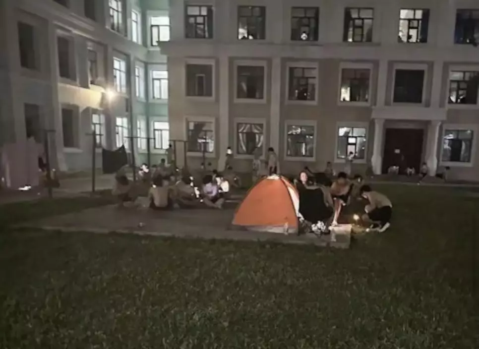 哈爾濱罕見高溫 大學生移至宿舍樓道樓下「打地鋪」