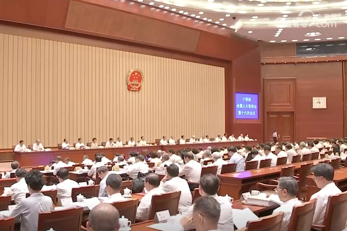 十四屆全國人大常委會第十六次會議在北京舉行。央視截圖