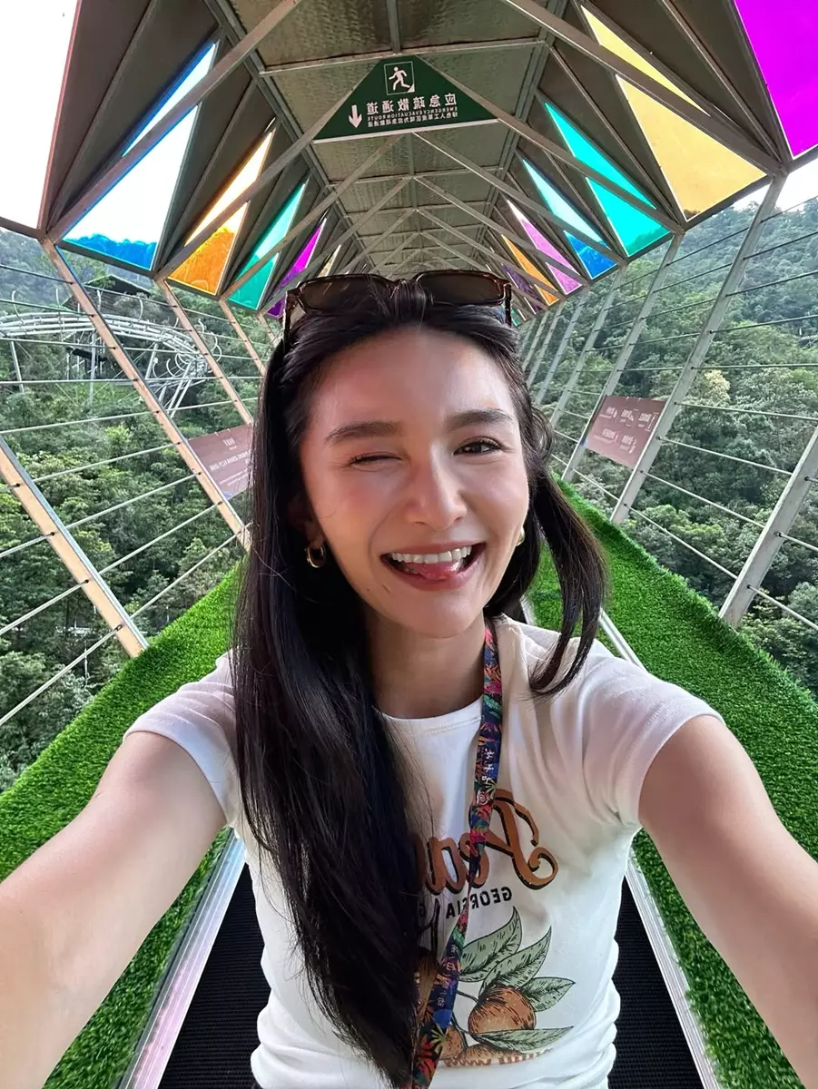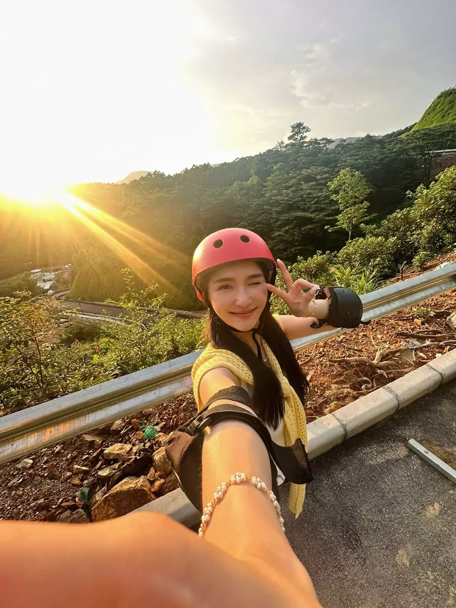 相中的關楓馨以多個清新造型亮相,其中一張她坐在溫泉邊,身穿白色小背心配短褲,大騷香肩鎖骨與纖細小蠻腰,一雙白滑美腿更成為焦點,畫面養眼度爆燈!她更幽默賣關子:「睇住大家逐漸變黑又得,立即變黑亦得!8月就有得睇啦!」暗示節目將於下月播出,令粉絲期待值急升。