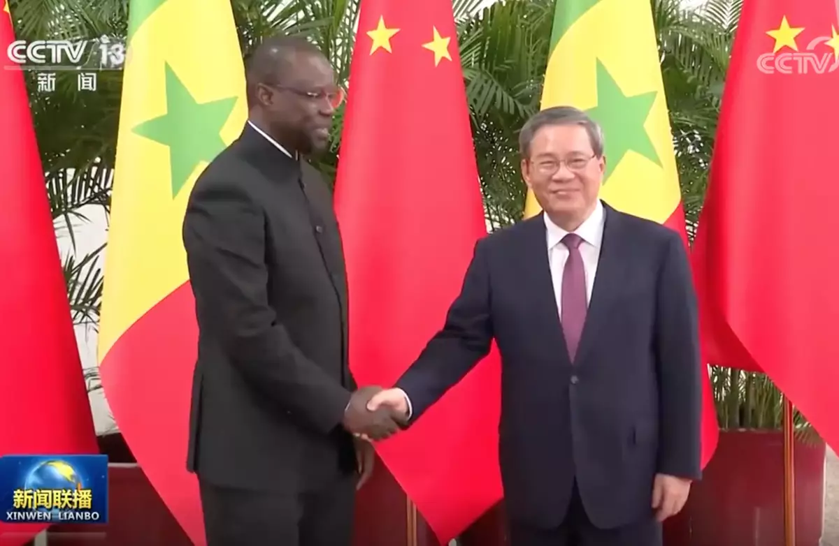 國務院總理李強在北京人民大會堂與來華出席夏季達沃斯論壇的塞內加爾總理松科會面。
