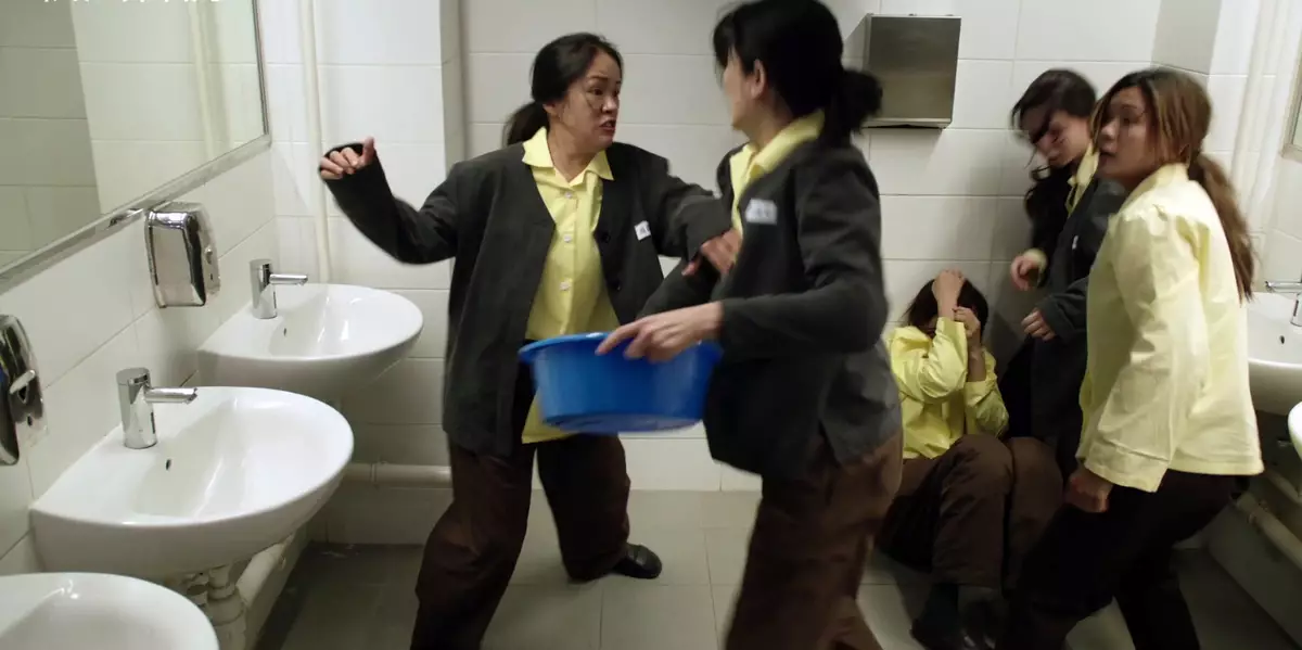 昨晚還有一個搶眼場口,就是飾演爛賭惡霸女囚犯的李漫芬,因為宣萱教陳若思讀書時「書書(諧音:輸)」聲唔吉利,對宣萱破口大罵之餘,更奮力將宣萱的頭「嘭一聲」質落枱上,相當驚嚇!事後問到這樣「對待」 宣萱心理陰影面積,李漫芬接受官方訪問時笑言:「我好耐好耐之前聽過張達明講棟篤笑,佢話拍成龍大哥啲打戲,你估成龍大哥畀人打驚咩?其實打成龍大哥嗰個仲驚呀!嗰刻我就真係體會到。其實拍完之後我都即刻攬住宣萱,係咁Say Sorry,佢哋攬番我話冇事冇事。」