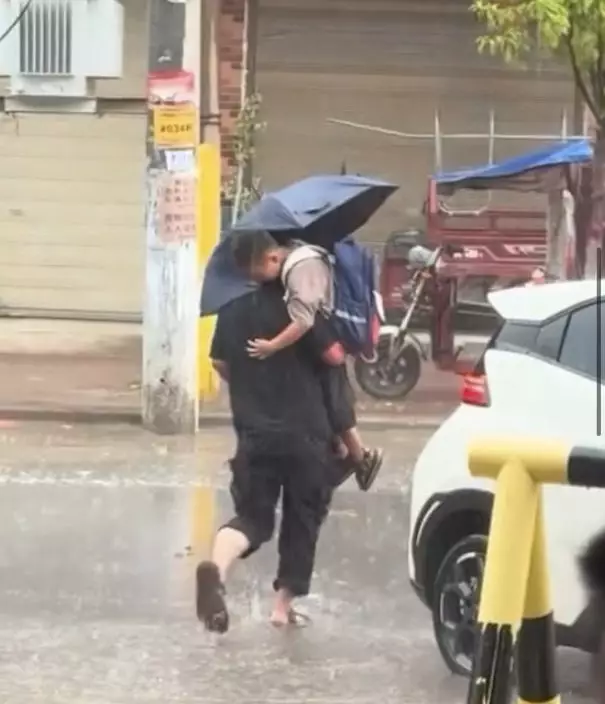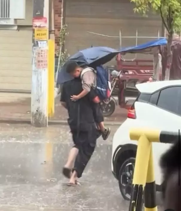 綜合內媒報導,內地一名爸爸日前被拍到在滂沱大雨中撐傘抱兒子前行的畫面,原本應屬溫馨時刻,卻因爸爸一時大意,未有帮兒子遮雨而鬧出笑話,逗趣畫面被路人拍下在網上瘋傳。