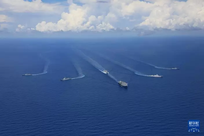 福建艦航母編隊首次海上實兵訓練。新華社圖片