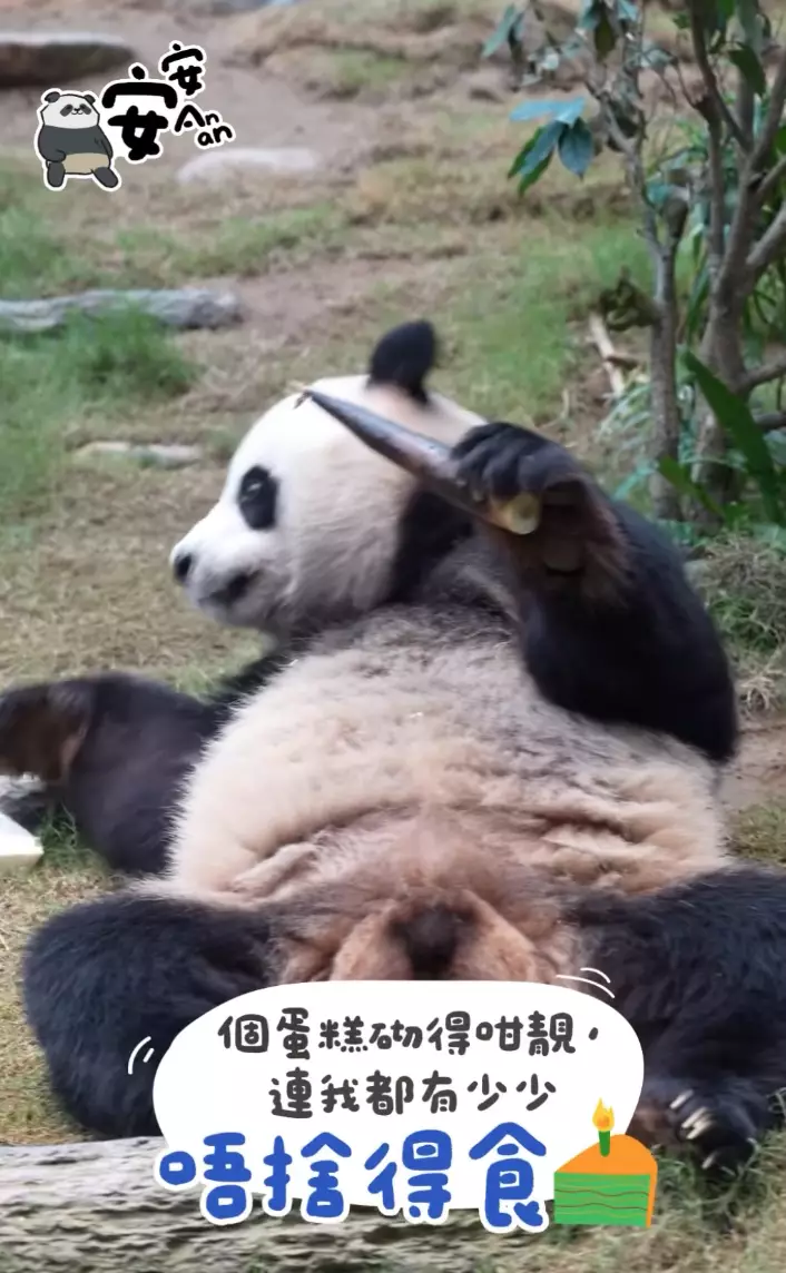 從海洋公園發布的片段,見到園方為首次在香港過生日的「安安」準備了生日食物,壽星熊則四處爬,最後選擇先吃竹筍。