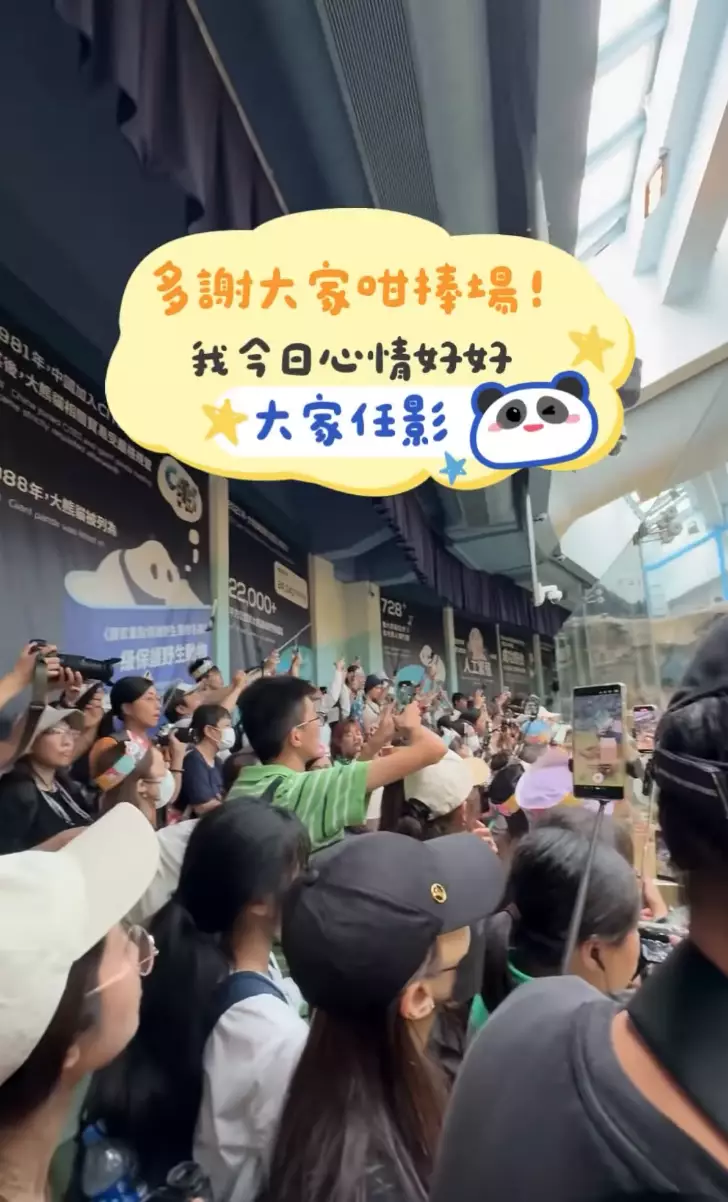 海洋公園表示,「安安」說多謝大家「咁畀面」排隊到來賀壽。「安安」又多謝市民製作的應援小物,說靚到「犯晒規」。