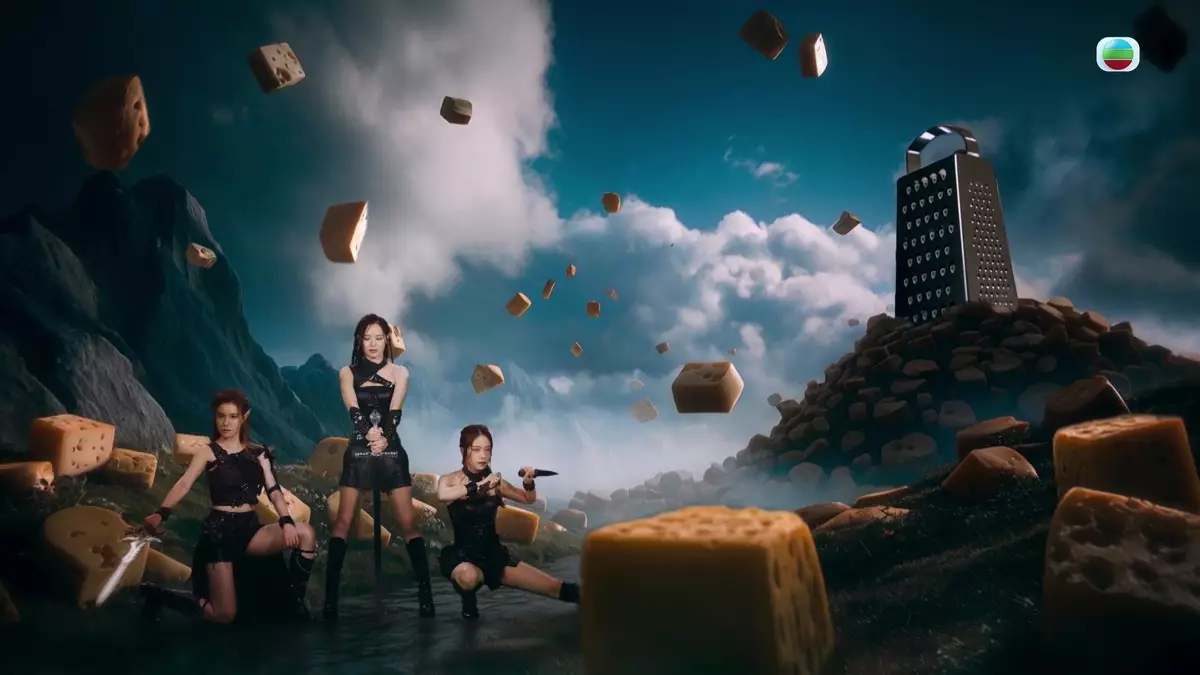 為了配合宣傳,三位冠軍港姐還以「戰狼300」造型,拍攝了一條「食物大戰」宣傳片,除了大晒長腿及玉手外,還會在以不同AI軟件打造出來的虛擬隧道或是跑道上,與巨型食物進行作戰,相當有創意!值得留意的是,三位港姐之中,只有宋宛穎以精靈造型上陣,問到是否宋宛穎獲厚待,對此製作組笑謂:「其實只係大家都覺得呢對精靈耳好襯宋宛穎,盈盈同璇璇真係冇咁襯。」