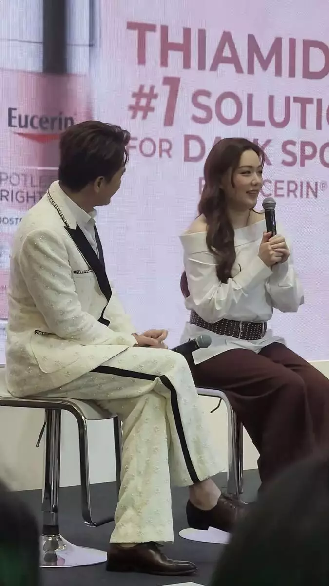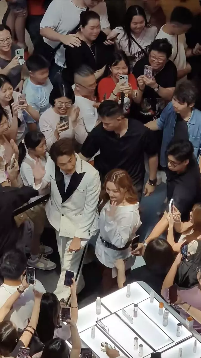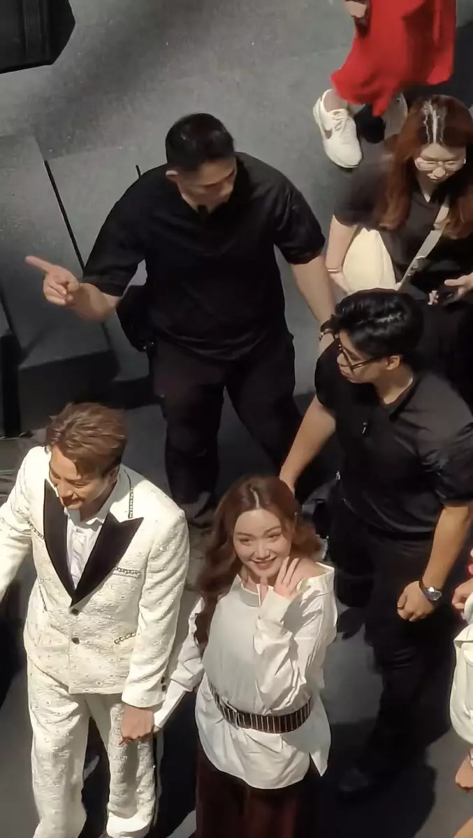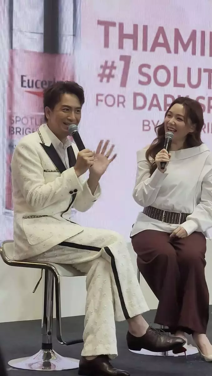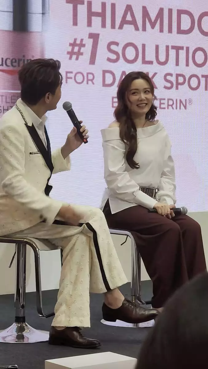 馬明和靚湯近日以首次夫妻檔出埠搵真銀,一同飛到馬來西亞出席品牌活動,兩公婆以白色情侶裝上陣,馬明更全程拖實老婆,呵護有加,更在活動中瘋狂放閃,引來全場尖叫!當中靚湯一身鬆身打扮,白色上衣搭配啡色長褲,看上去明顯比之前更圓潤,腰身亦糧了,隨即引來不少網民懷疑她懷有身孕,但亦有人認為靚湯屬易胖體質,應該只是幸福肥。