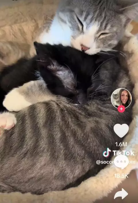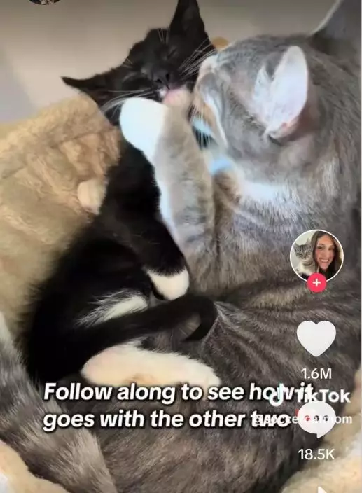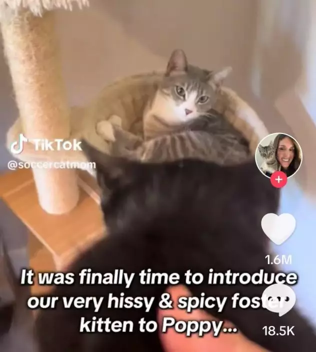 綜合外媒報導,國外一名女子艾希莉(Ashley Saldana)家中雖已飼養了3隻貓貓,但仍經常擔任中途之家,照料有需要的流浪貓,並時常在社交平台分享寵物貓與寄養貓的生活。近日,她在網上分享了一段感人片段,記錄新來的救援小貓Sriracha首次與家中虎斑貓Poppy見面的情景,點擊量突破1千萬次。