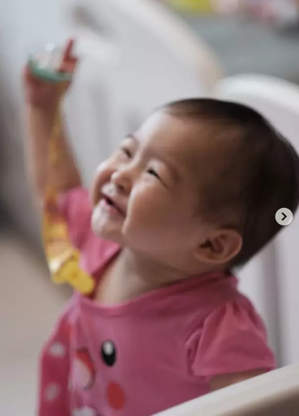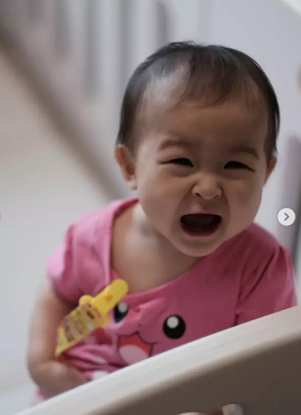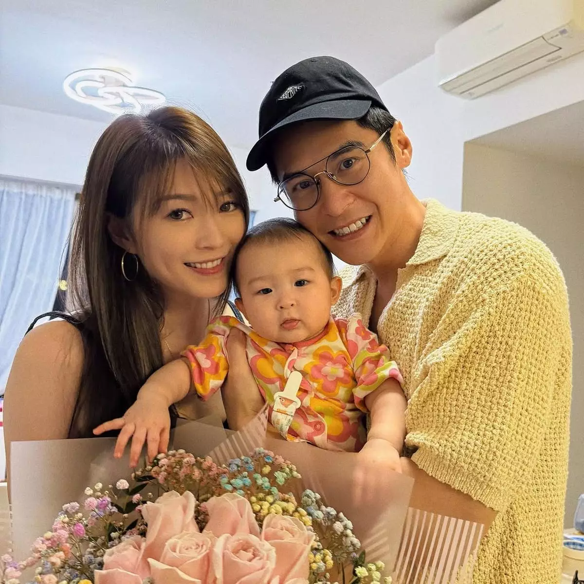 Shiga在IG晒出一家三口和蛋糕的合照,並留言:「一家人,齊齊整整,大家健健康康。今年仲係Camila同我過嘅第一個生日,已經係最好嘅禮物。多謝陳生。」相中可見,快將一歲的Camila好活潑,影相時更「起飛腳」,相當可愛!