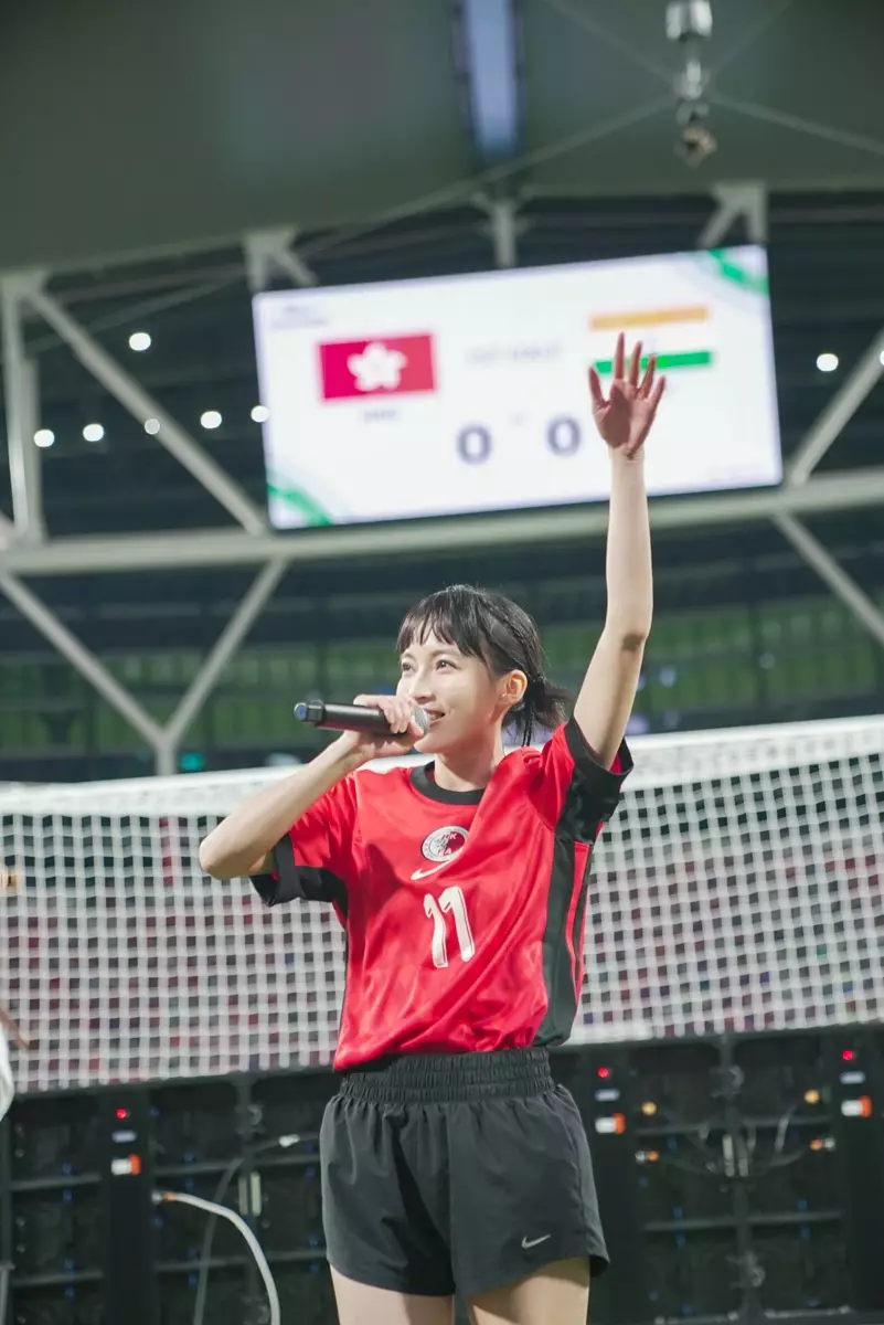 昨晚(6月10日)啟德主場館上演「2027亞洲盃外圍賽」港隊大戰印度,除咗場內激戰,嘉賓表演亦一樣精彩。許靖韻(Angela)、女團VIVA及於ViuTV節目《足球女將》獲得MVP的郭思(Suey)輪流登場,Angela更被球迷「嫌棄」歌單太慘情,場面搞笑。