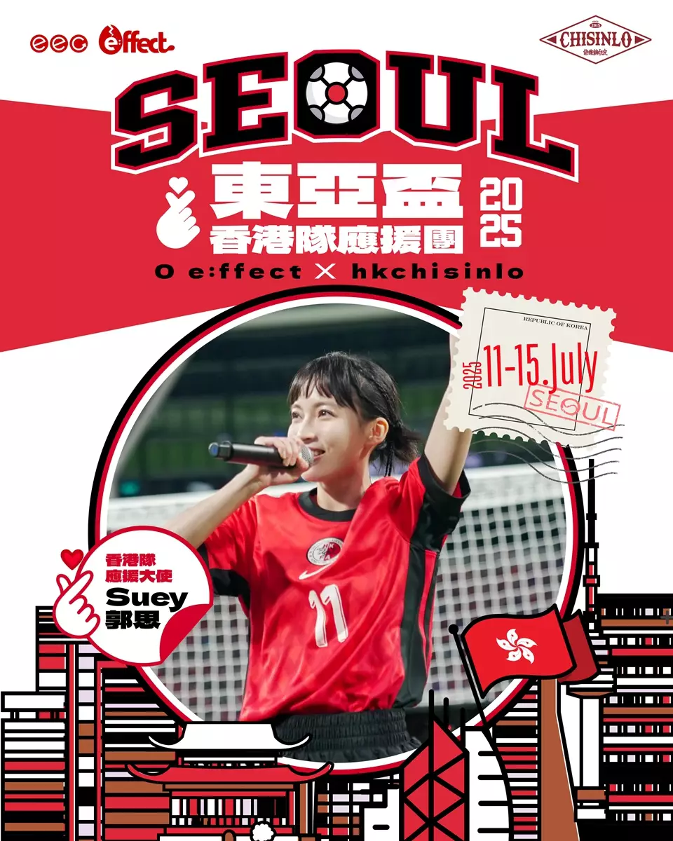 今個暑假郭思(Suey)帶團殺去韓國睇波!事關「2025年東亞足球錦標賽」七月於南韓舉行,香港隊將硬撼南韓隊,這位女球迷對睇波、踢波上晒癮,今次更搞埋「0 e:ffect x hkchisinlo 東亞盃 2025 香港隊應援團」,準備帶班香港球迷遠征韓國!