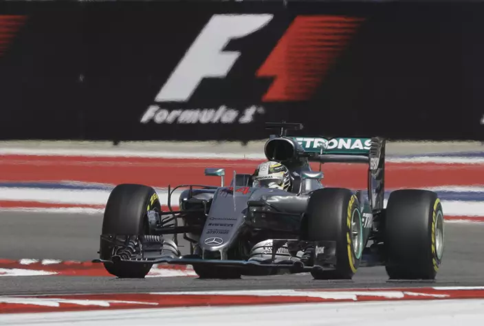 F1美國站排位賽,平治車手咸美頓造出全日最快圈速1分34秒999,將排頭位出賽。