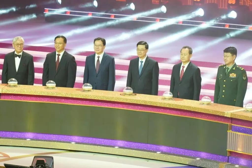 行政長官出席「星耀紫荊慶回歸」紅館晚會致辭。政府新聞處圖片