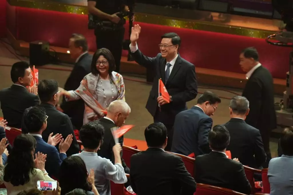 李家超在紅館與各界同慶回歸。FB圖片