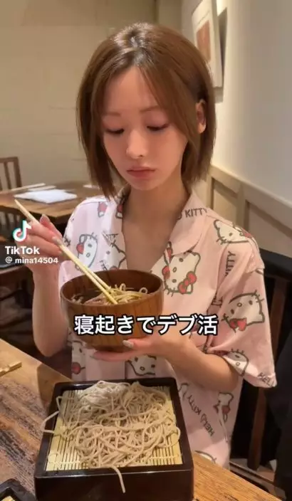 綜合日媒報導,日本一名女子Mina(みな)近日於TikTok上載一條「一口吞蕎麥麵」的短片意外爆紅網絡。影片中,身形纖瘦、外貌甜美的Mina自稱在東京六本木某俱樂部工作,目前帳號僅上載6段影片,當中4段均圍繞「大口進食」主題,包括公仔麵、拉麵、烤肉及蕎麥麵等,其中吃蕎麥麵的短片在X平台瘋傳引發網民熱議。