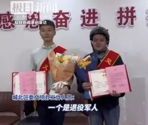 青海外賣員送單意外目擊一名男子墮河,遂與現場一名退伍軍人跳河救人,獲雙雙頒榮譽證書。