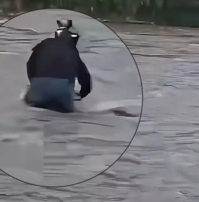 韓鵬目睹這一幕立即報警,隨後果斷跳入冰冷河水救人。惟因連日大雨,「湟水河」水流急湍,落水男子隨即被沖出10多米遠,導致腿部受傷。由於男子體重較重,韓鵬獨自施救較為困難。