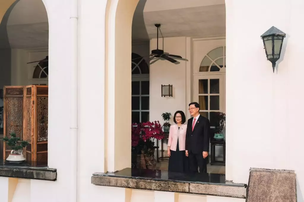李家超在社交網頁表示,就任行政長官三年來,感謝太太始終握緊他的手如初,讓他可全力以赴為香港的未來譜寫新篇,繼續拼經濟、惠民生。