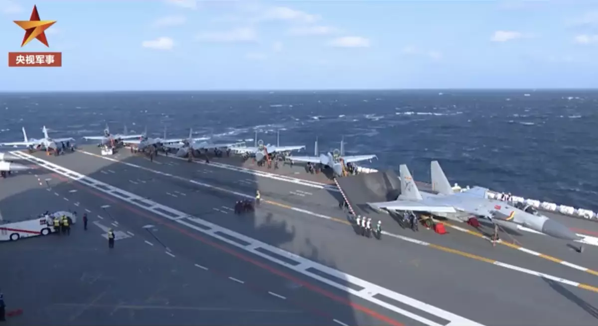 央視新聞在微博發放即將訪港的山東艦航母編隊片段,片段長約50秒,展示編隊的多艘軍艦在海上航行、實彈演練和發射、艦載戰機和直升機升降、艦艇泊岸的畫面等。