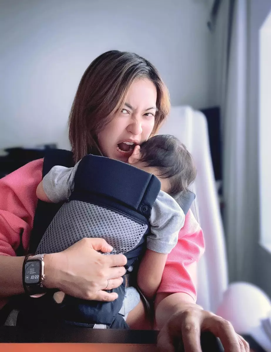 朱千雪在IG分享2張近照,並留言::「假期姐姐放假,爸爸返工,我要趕deadline...惟有要BB陪我工作。當working mom最難,就是兩個角色永遠都是要同一時間做。So everyday I am just trying to perfect my ability to multitask(所以我每天都在努力完善我的多工處理能力)。」相中可見,她抱着囝囝趕工作,並對着鏡頭微笑,但下一張就見到她露出發惡的表情,「樂與怒」的對比照非常可搞笑,但亦看得出要成為做多功能媽媽認真不容易!