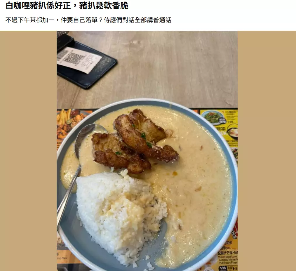 樓主大讚白咖喱豬扒係好正,但不滿要加一
