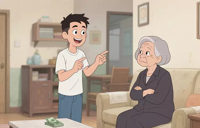 藍衫阿婆塞下500元後悄然離開。AI 生成圖片
