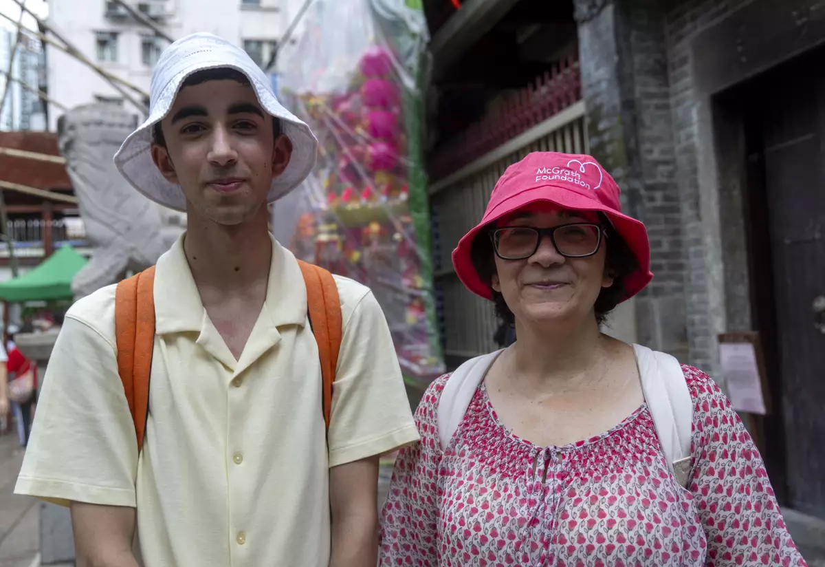 來自澳洲墨爾本的Velerie和兒子Caelab過境香港只逗留兩天,乘搭山頂纜車觀光時被文武廟的照片吸引,慕名而來。他們都是第一次參觀中式廟宇,認為廟內氣氛平和,廟外活動熱鬧又有趣,廟的建築設計十分漂亮,為他們的香港之旅留下美好回憶。