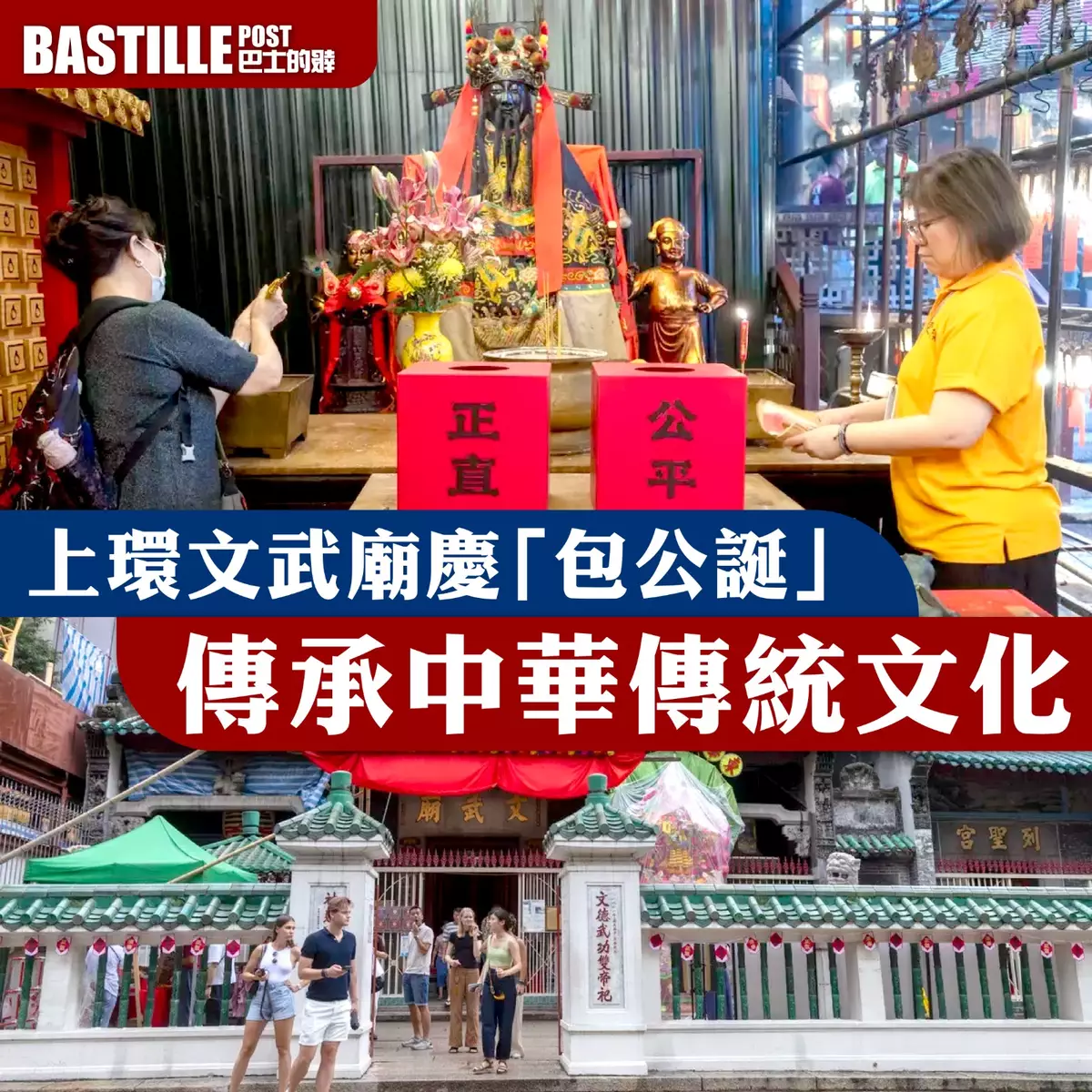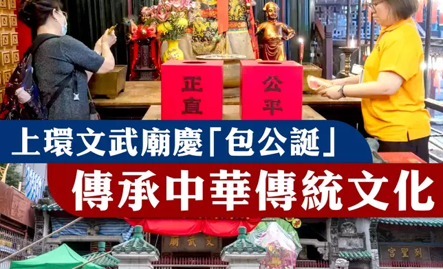為承傳及推廣包公信仰及所蘊含的中華傳統文化價值,東華三院文武廟、香港史學會、獅子頭文化工作室及程尋香港,於本周一(農曆六月初六)包公誕當天,在上環文武廟舉行參神及醒獅儀式,廟內還設有中英對照的文化展版,介紹包公的歷史故事和起源,以及信仰流傳。