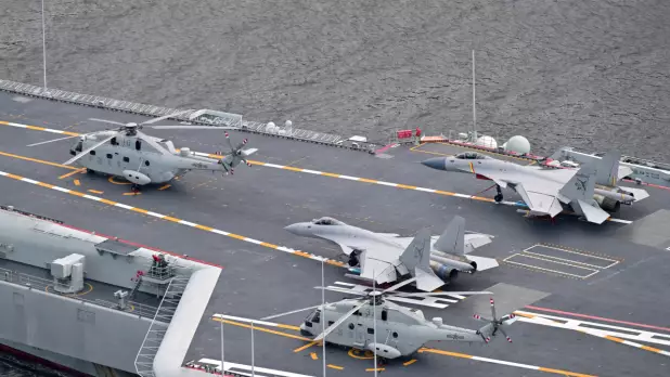 山東艦航母編隊抵達香港,央視報道,去年11月才曝光的國家研發殲-15T彈射型艦載戰鬥機,首次在航母甲板對公眾開放。