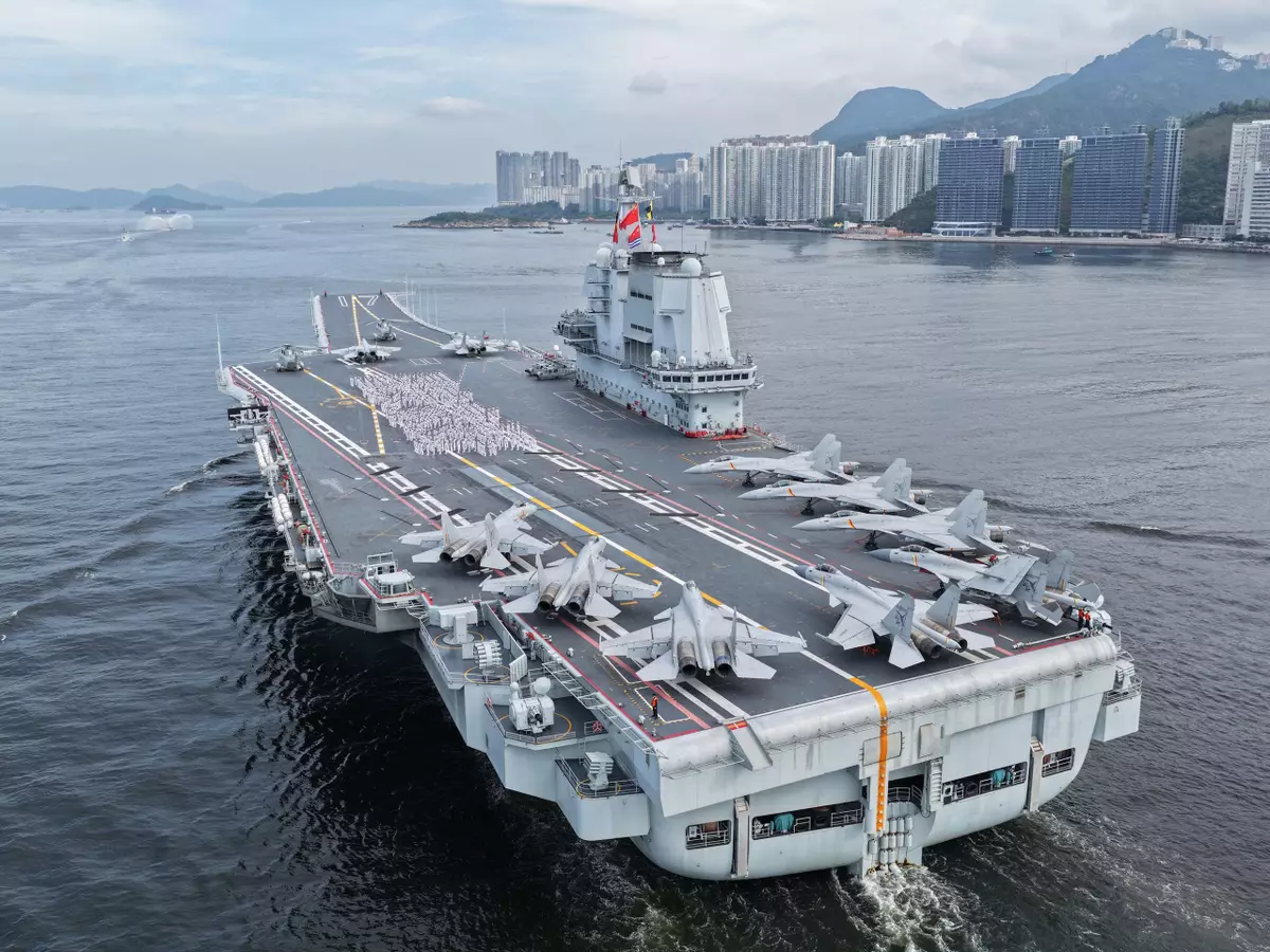 山東艦航母編隊抵達香港,央視報道,去年11月才曝光的國家研發殲-15T彈射型艦載戰鬥機,首次在航母甲板對公眾開放。