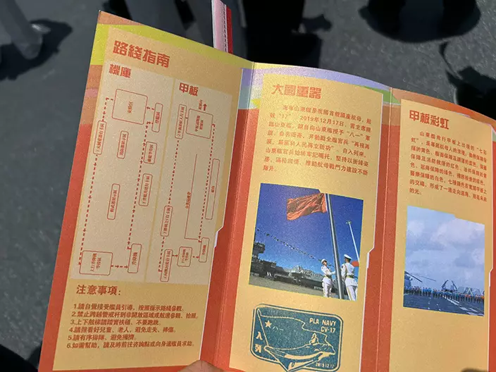 張小姐表示:「甲板上的戰機非常震撼,艦員很友善,還主動用粵語介紹。識別服展示區可以親身試穿,感覺自己像海軍一員!艙內的山東工藝品很有特色,整體參觀體驗新奇又有教育意義。」