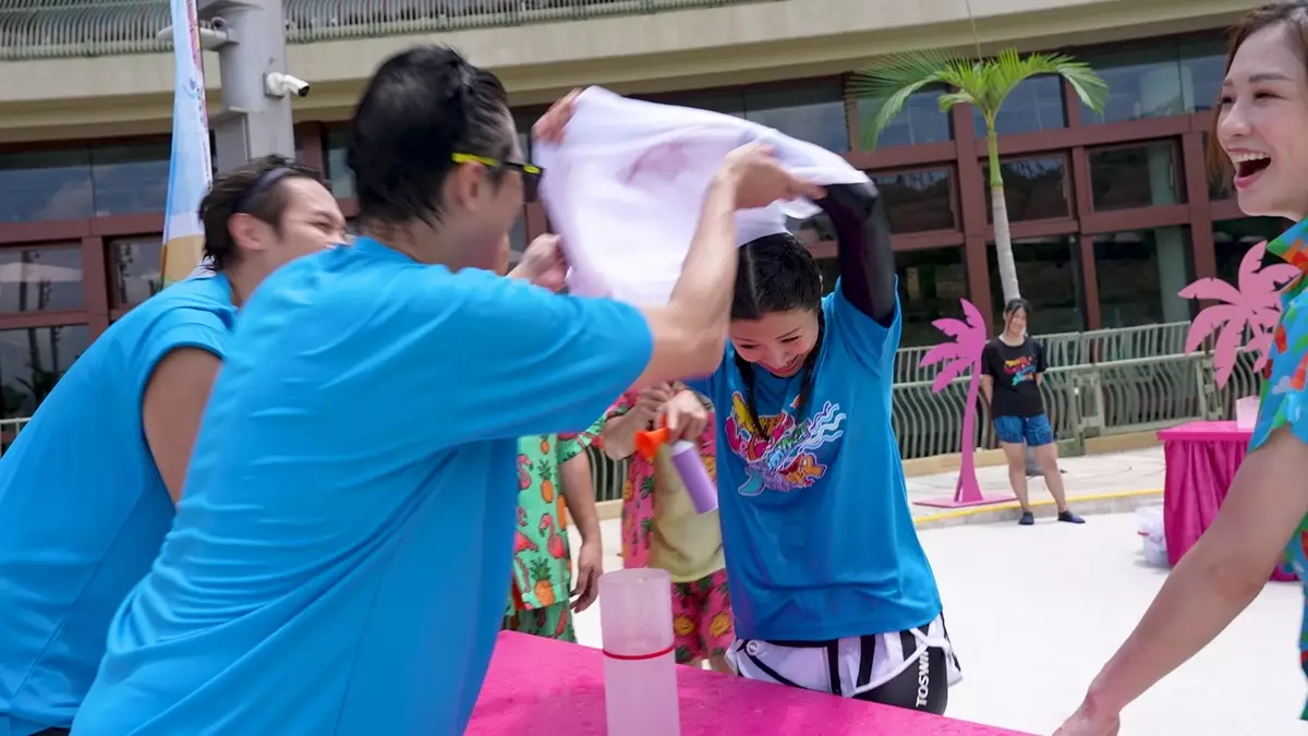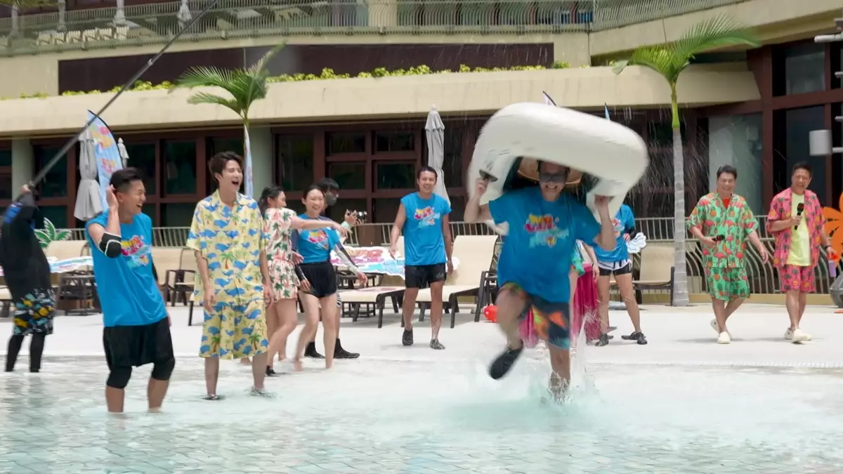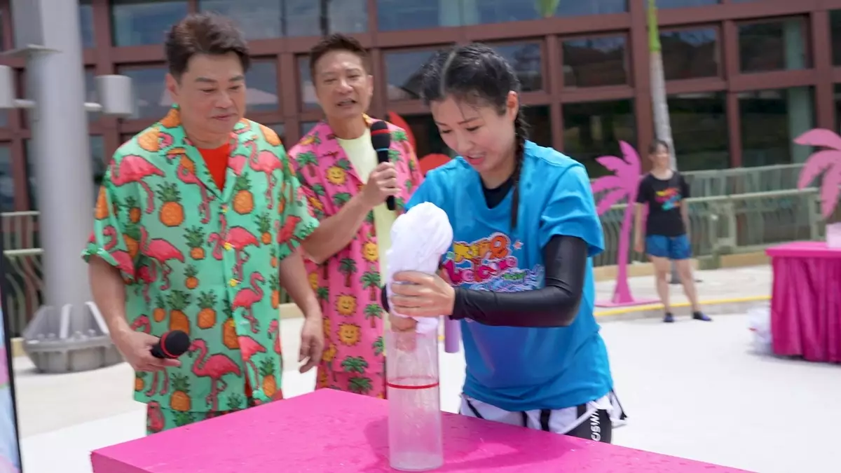 本周日(7月6日)一集最搶焦的,絕對是「夫妻檔」洪天明和周家蔚,二人全程拍住上玩遊戲、默契十足!先說「水中大電視」環節中,二人不但同心協力做出「心口碎大石」、「打尿震」、「槍戰」等多款高難度動作,洪天明更趁其他人專心玩遊戲時,偷偷孭起周家蔚氹愛妻開心,恩愛爆燈。之後於「水上障礙大賽」,周家蔚整濕衣衫運冰水時,由於唔夠力扭極扭唔出水,洪天明見狀即出口「護花」:「我可唔可以幫佢㗎?」說畢即熟手地幫周家蔚脫掉濕衫,還笑言「呢個我拿手」,盡顯體貼及搞笑一面。