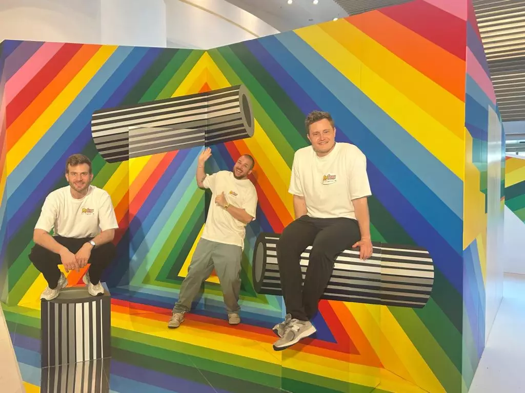 TAPE THAT由Stephan Meissner、Adrian Dittert 與Nicolas Lawin三位藝術家組成,擅長運用黏性材質,結合幾何構圖、色彩、光影變化與錯視手法創作。是次來港,他們打造了三大互動空間,包括Flying Tapes「懸浮地帶」、The Taped Staircase「錯視之階」及Into the Shromosphere「繽紛幻境」。公眾不僅可在特定位置觀賞,更可走入各空間,以不同方式體驗創作,探索色彩美學的無限可能。