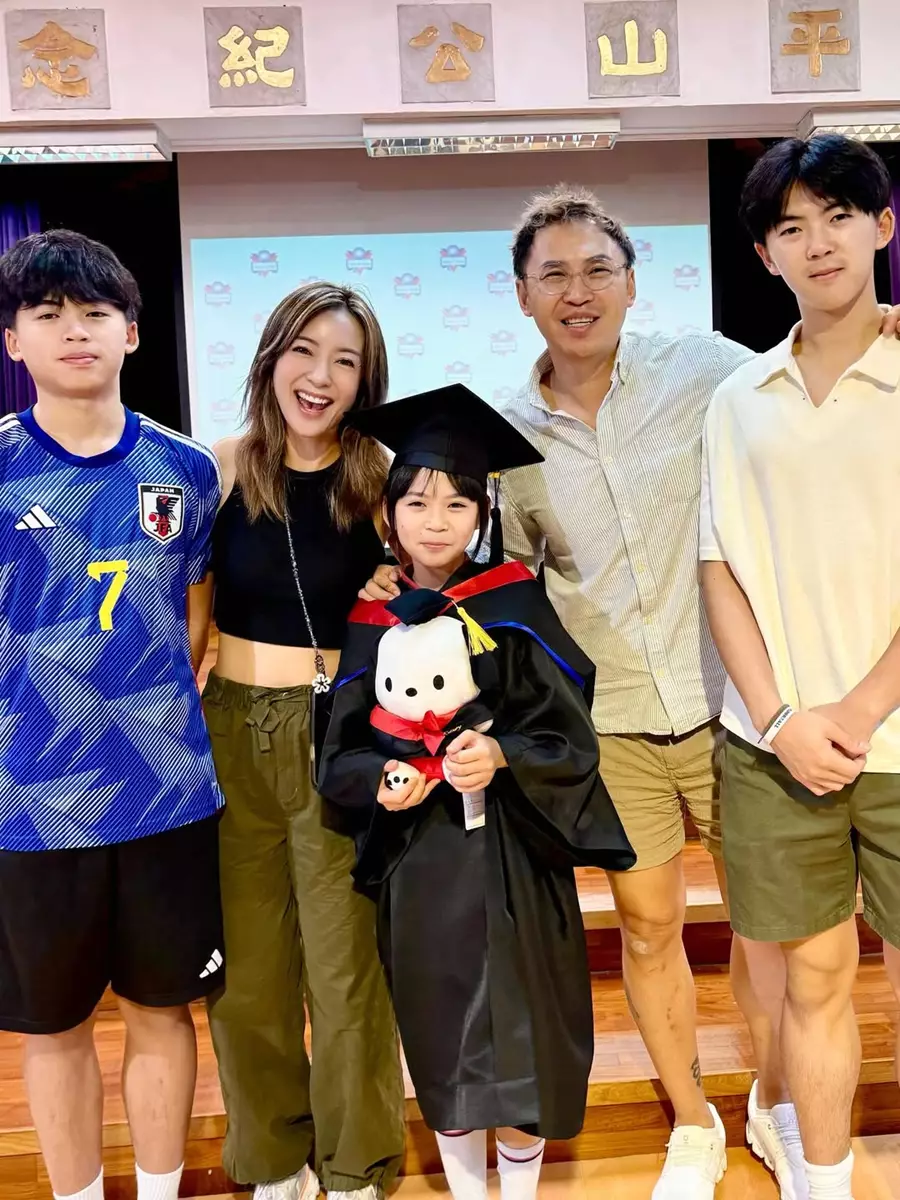 梁芷珮在社交平台分享畢業禮照片,Kasey戴著四方帽,眼大大兼擁有一副瓜子臉,與媽媽如同「餅印」般相似,甜美可愛。Christy更感性發文表示:「嗰頭大嗰個21歲變成人,呢頭就最細嗰個都小學畢業了!太太太快喇!」字裡行間流露對子女成長的不捨與欣慰。
