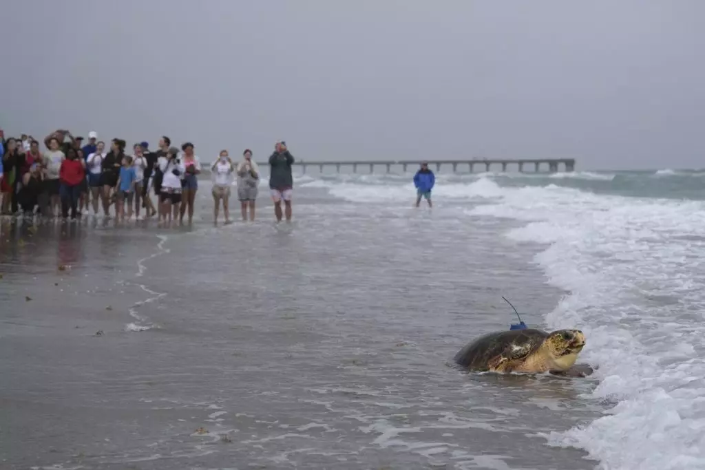 《美聯社》報道,海龜叫「迪莉達莉」(Dilly Dally),重72公斤,在數十名支持者見證下,在佛羅里達州朱諾海灘被輕柔地放在沙灘上。牠用僅剩的三隻鰭,奮力地、一步步地爬回屬於牠的海洋。「赤蠵龜海洋生物中心」(LMC)在臉書上寫道:「我們很高興看到迪莉達莉平安回家!」