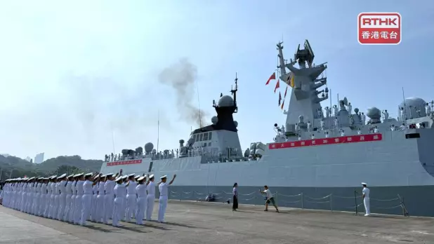 特區政府早上10時在昂船洲軍營舉行歡送儀式,中聯辦副主任劉光源、海軍、南部戰區和駐港部隊領導和編隊指揮員等人出席,亦有學生和市民參與歡送。