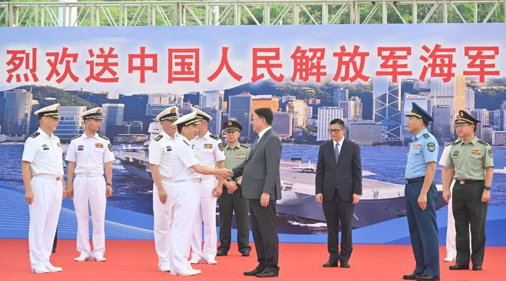 政務司司長出席中國人民解放軍海軍山東艦編隊離港歡送儀式。政府新聞處圖片